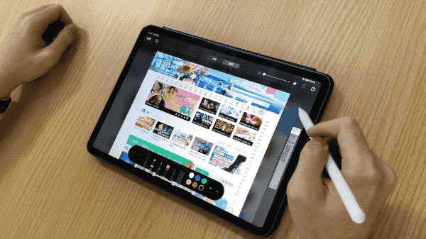 您可以使用新系统 Apple Pencil 从屏幕的左下角移动到中心,从而允许您剪辑和标记整个页面。