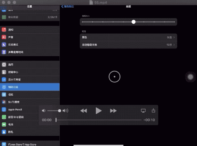 [设置]> [辅助功能]> 在 辅助触控 开关上,点击 指针设备> 栏下的 设备蓝牙设备 ,将鼠标蓝牙与配对模式配对,并保持 iPad 打开。 您将看到一个类似于鼠标指针的 “圆形白点”。